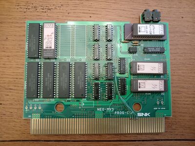 Uses a HD63P01M1 MCU that takes an EPROM, instead of the mask-programmed HD6301V1 used on production multiplayer boards.